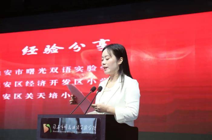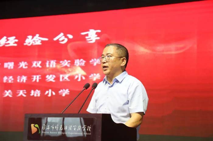 随后,淮安市曙光双语学校赵国清校长、淮安区经济开发区小学代表、淮安区关天培小学代表依次上台,分享诗教课程实施经验与特色做法,从课程设计、氛围营造、师资培训到活动开展,三场汇报各有侧重,为后续诗教工作在更多学校的逐步推进提供了可复制、可借鉴、可落地的实践样本。