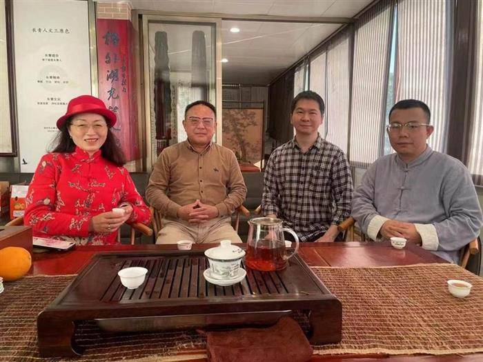 ▲首次拜访长青诗社,受到庄重副社长(左二)热情接待