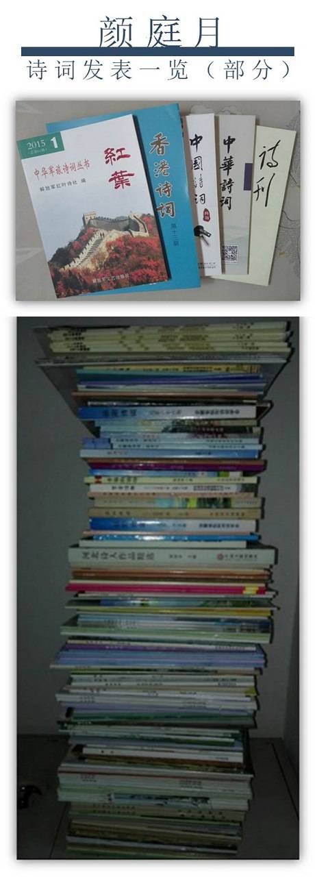 ▲颜庭月发表诗词的部分刊物