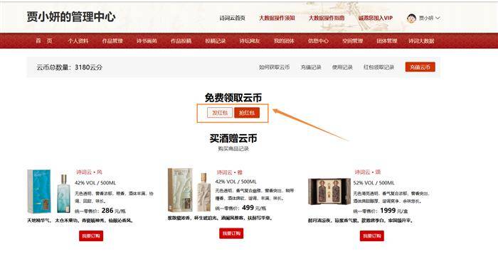 原诗词云首页的“”新年抢红包”横幅图已下线,如想领取或者发放红包请登录个人账户,进入个人管理中心,云币管理栏目里进行操作,也可以直接点击此链接(http://www.shiciyun.com/view/members/personalmanagement/property.aspx)进行操作,感谢配合!