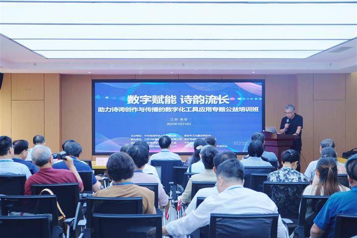 为积极响应中华诗词学会“共建中华诗词大数据倡议”,提升广大诗词爱好者、学习者及工作者运用数字化工具赋能诗词创作、研究与传播的能力,推动诗词文化的现代化转型与繁荣发展。10月10日至10月13日,由中华诗词学会大数据事业部、淮安市文化建设研究会主办,中华诗词学会出版传媒工委、中华诗词学会书画工委、安徽省诗词协会法治诗词工作委员会、淮安坤行传媒科技有限公司协办,江苏书妙翰缘科技发展有限公司、淮安恒盛科技投资有限公司承办的“数字赋能,诗韵流长”——助力诗词创作与传播的数字化工具应用专题公益培训班在江苏淮安举行。