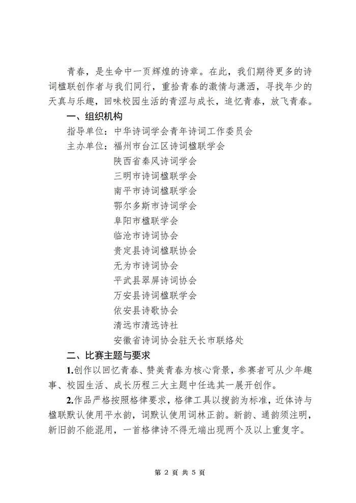 2.收录所有获奖作品,编印《2026年“十省携手·诗联青春”全国诗词楹联大赛作品集》纸质版书籍,赠送获奖作者。