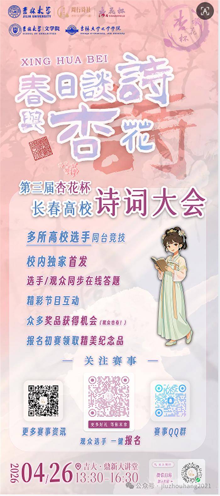【吉林省诗词学会】【诗词征稿】第三届“杏花杯”长春高校诗词大会开启报名