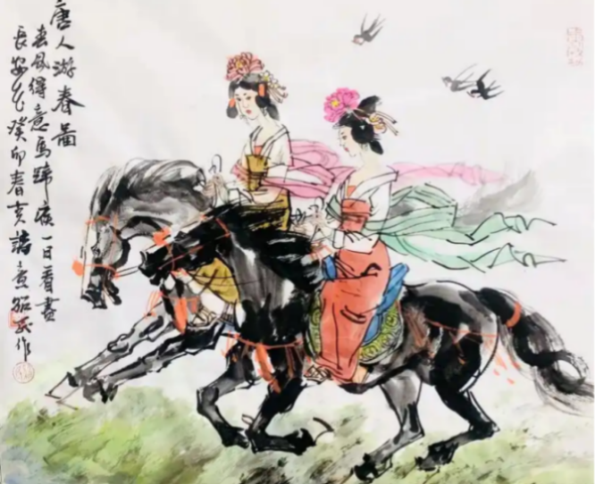 二、 癯仙湛露泛流霞,马踏春泥半是花。 古寺袅烟云锦出,白铺鸥鹭落平沙。