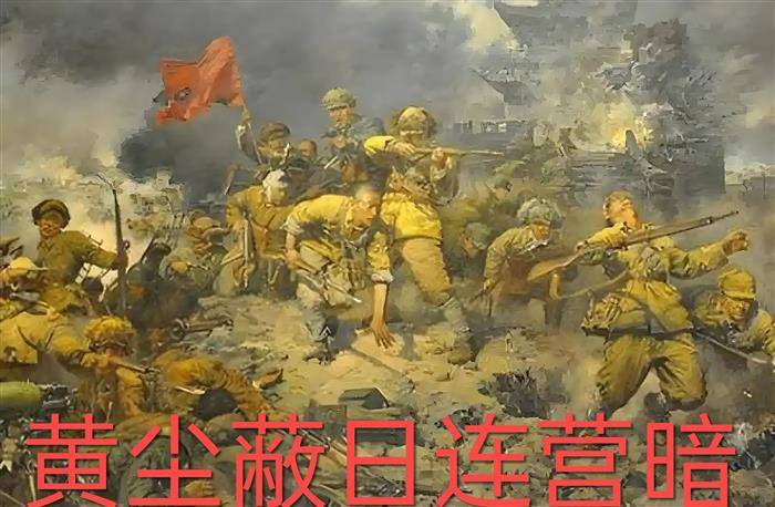 黄尘蔽日连营暗, 赤帜摩天万众晖。