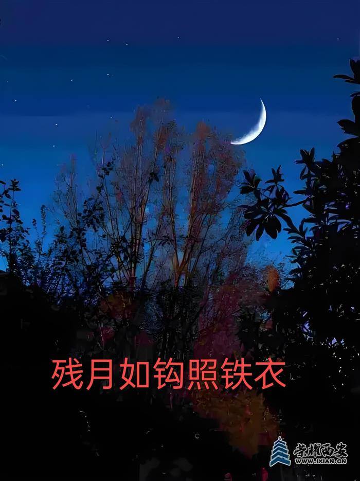 残月如钩照铁衣, 战壕霜重马蹄稀。