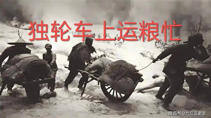 鼓角声中飞弹疾, 独轮車上运粮忙。