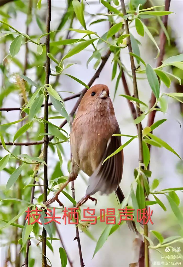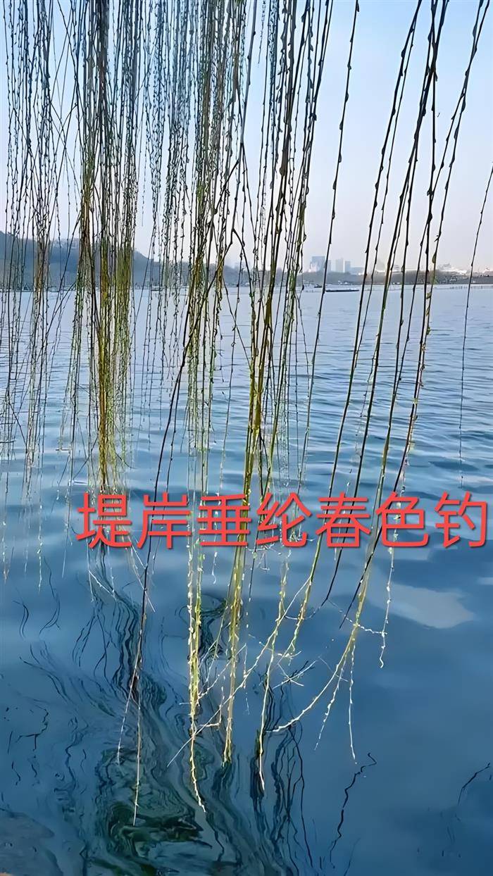 堤岸垂纶春色钓, 枝头栖鸟唱声啾。