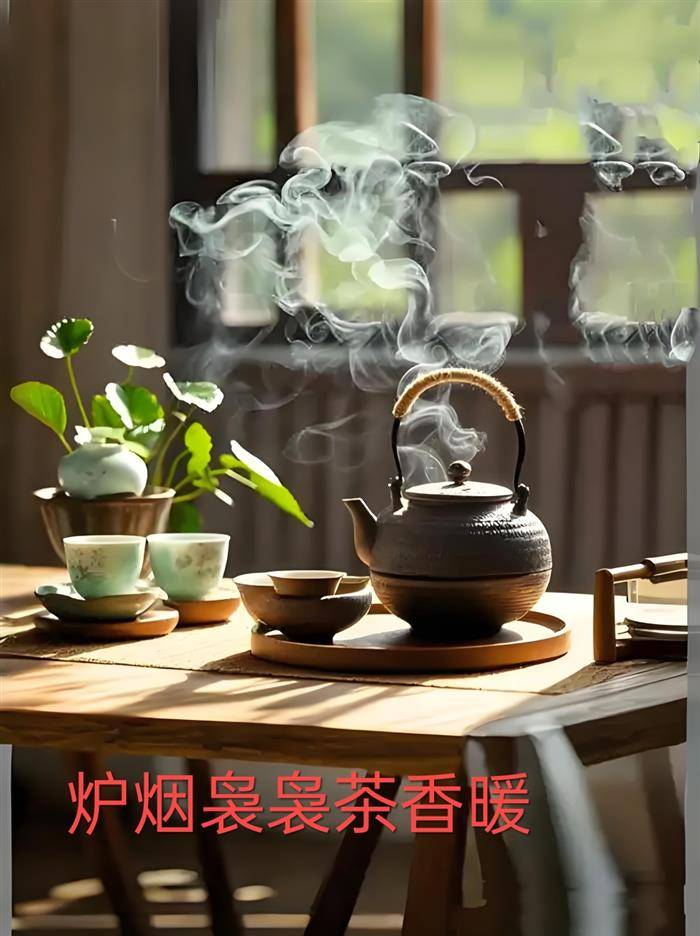 炉烟袅袅茶香暖, 砚水泠泠墨色宽。