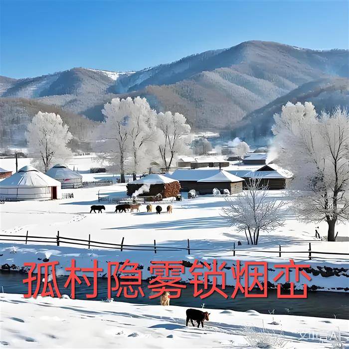 冻柳垂绦牽玉屑, 孤村隐雾锁烟峦。