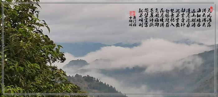 注释:译文---浩荡天风轻拂着云朵的边缘,翻涌的云海仿佛要吞没远山。松林涛声裹挟着沧桑劫数缓缓漫卷,古寺钟声沉静地镇守万古平安。梵唱化作白鸥盘旋飞舞,青苔漫上石阶如帘幕轻拂栏杆。是谁将断简残篇掷向苍翠崖壁?劈开虚空写就万座峰峦的永恒诗篇!