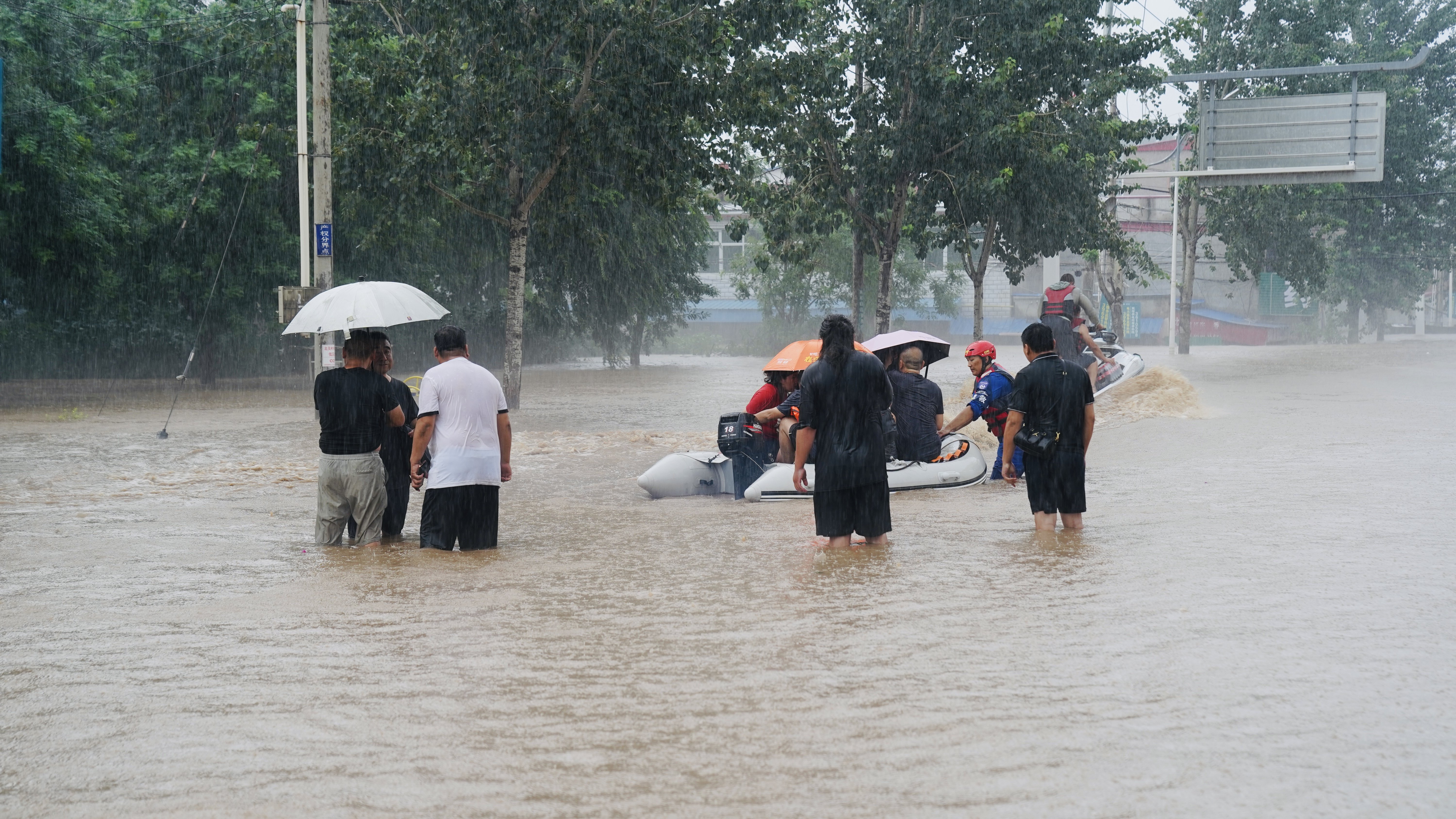 2023年8月1日下午两点,在河北涿州范阳桥西疏导转移群众的交警何远洋发现一女子没有任何防雨措施,抱着一个襁褓中的婴儿。何远洋接过婴儿,婴儿母亲为他撑起群众递过来的伞,一直趟过水深区域。