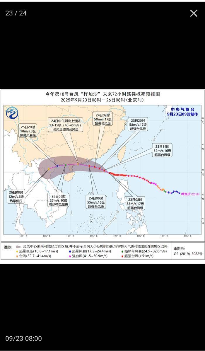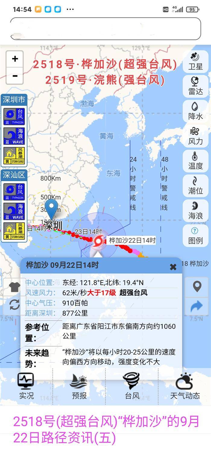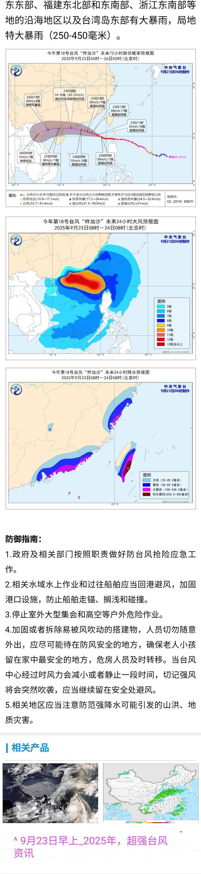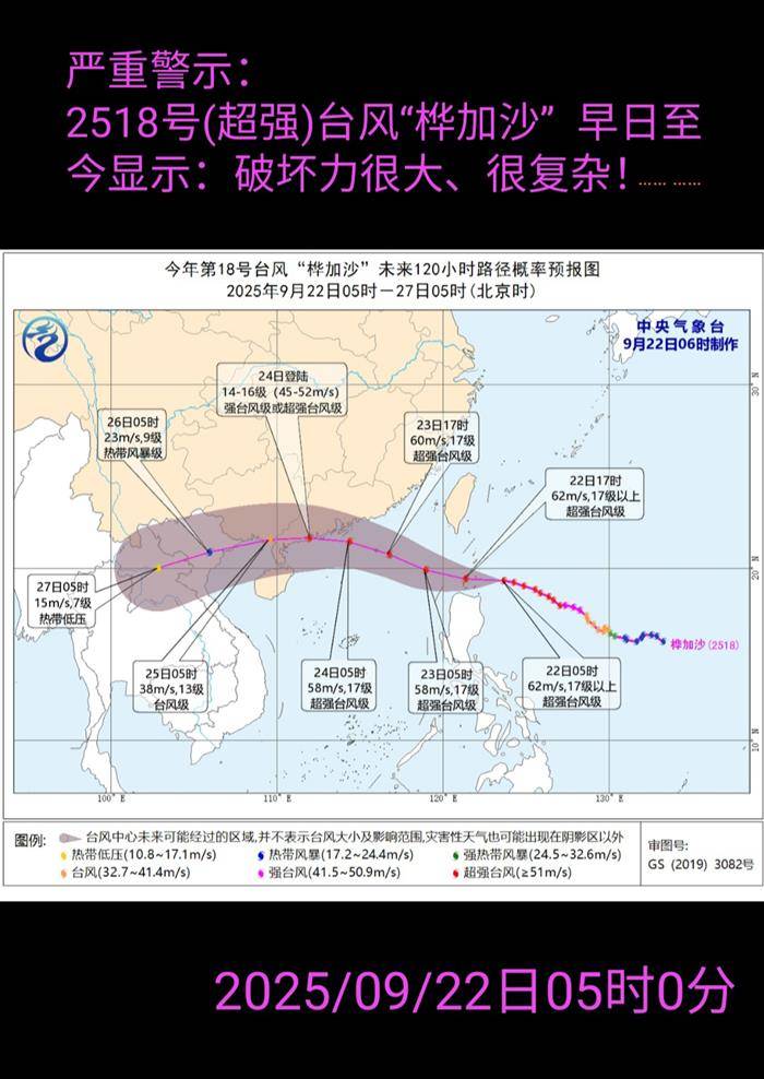 9月22日–2025年 天况、超强台风“桦加沙”的有关资讯(选发):