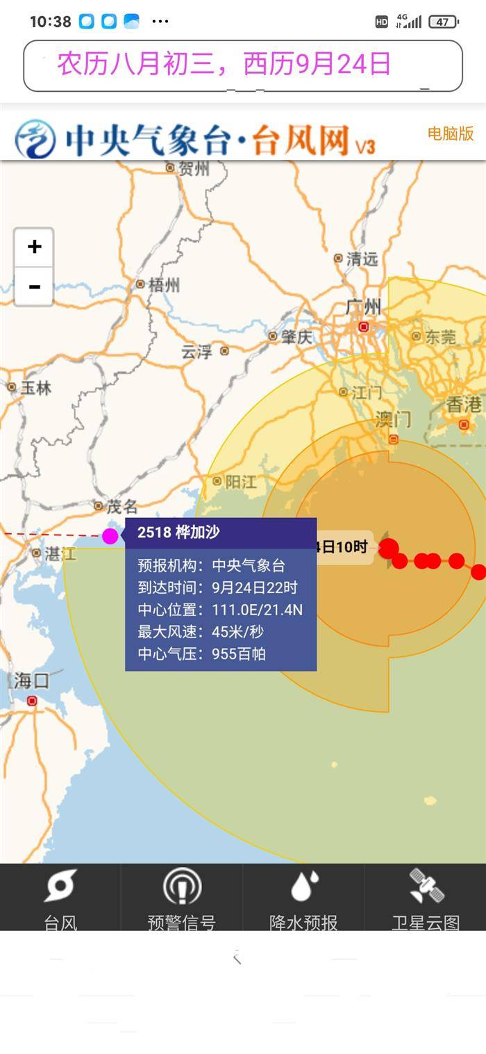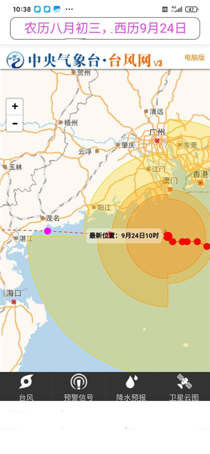 【注:今年第18号台风(超强台风)已经登陆阳江市江城区平冈镇的沿海地区,登陆时间是今天17时前后,台风中心登陆时的最大风力是13级;这一建议的相