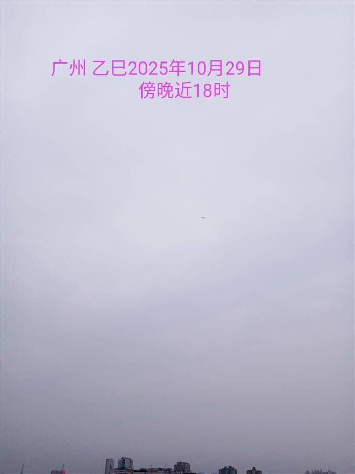 飞机在顺航 ;下面的图片是广州今乙巳岁2025年11月5日傍晚5时左右拍摄的照片,可见上午晴朗阳辉的空况已经转变为多云的天空。与此同时,12级台风海鸥的中心已经括袭到中国南海中部地区(海面),正向着越南中部沿海地区滚袭,这个台风的强度还会有所加大;在接近登陆越南沿海海岸时的台风中心附近最大风力将增大至15级;这台风经过的地区与相关地区将有豪雨等劣况;这个台风的上述资讯,是中央气象台今天刚才(今傍晚6时左右)公报的。