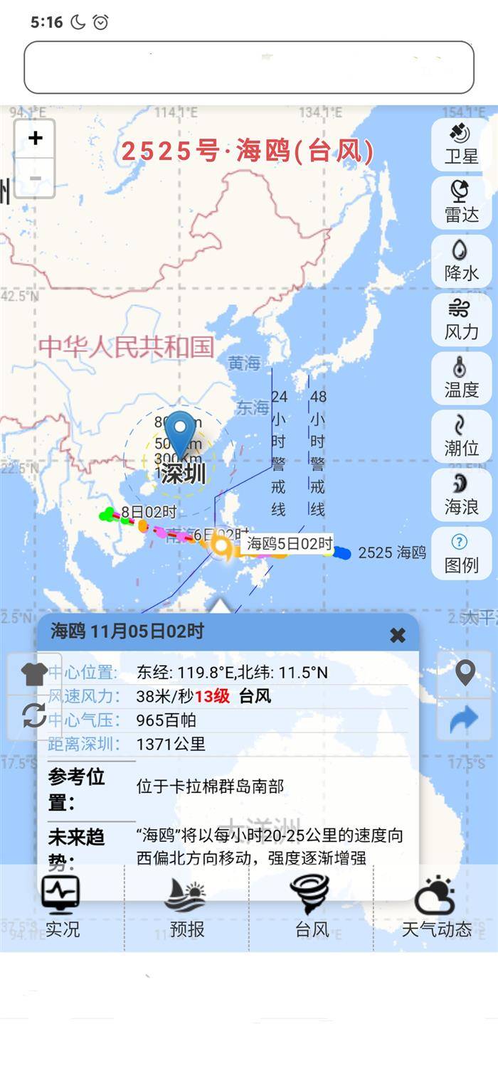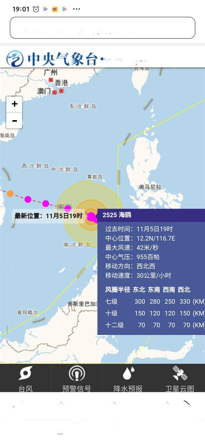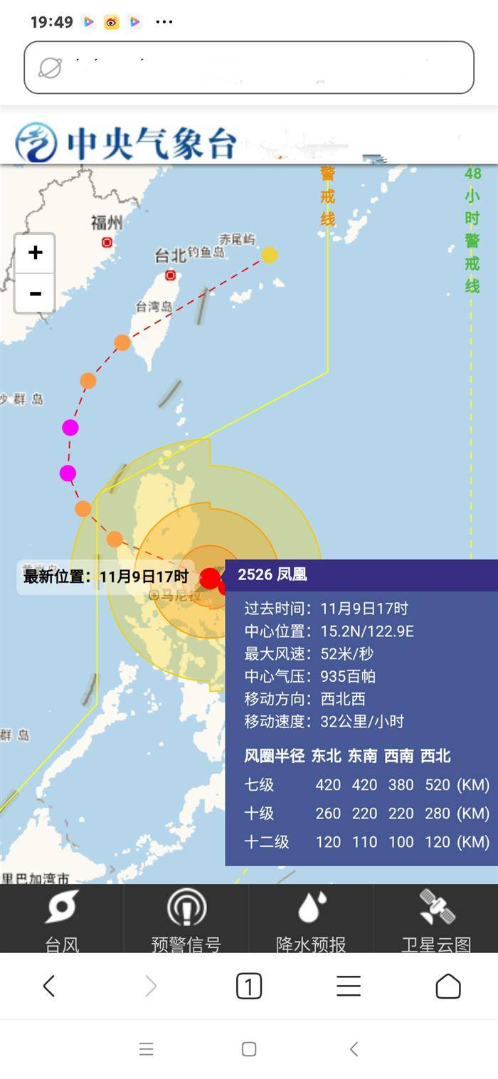 ( ^ 2025年11月9日19时,超强台风 凤凰的资讯。这个热风,凤凰中心附近最大风力16级。)