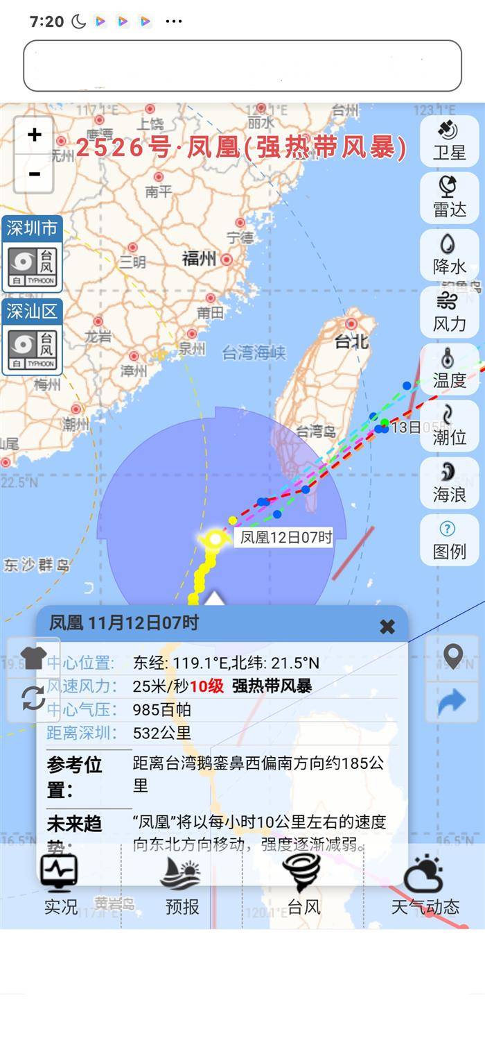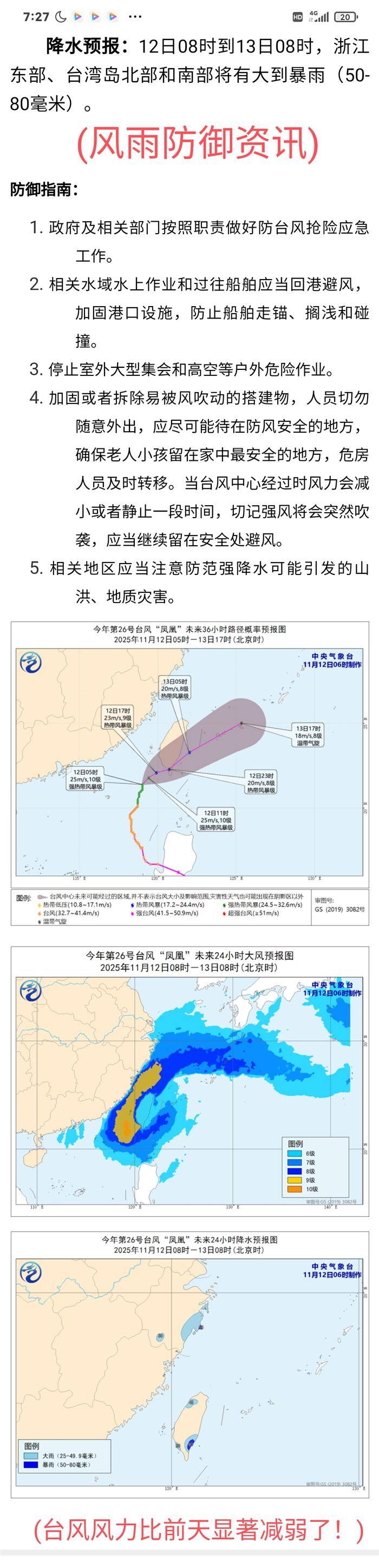 台风凤凰的风力已经比前天(11月10日)大减弱:
