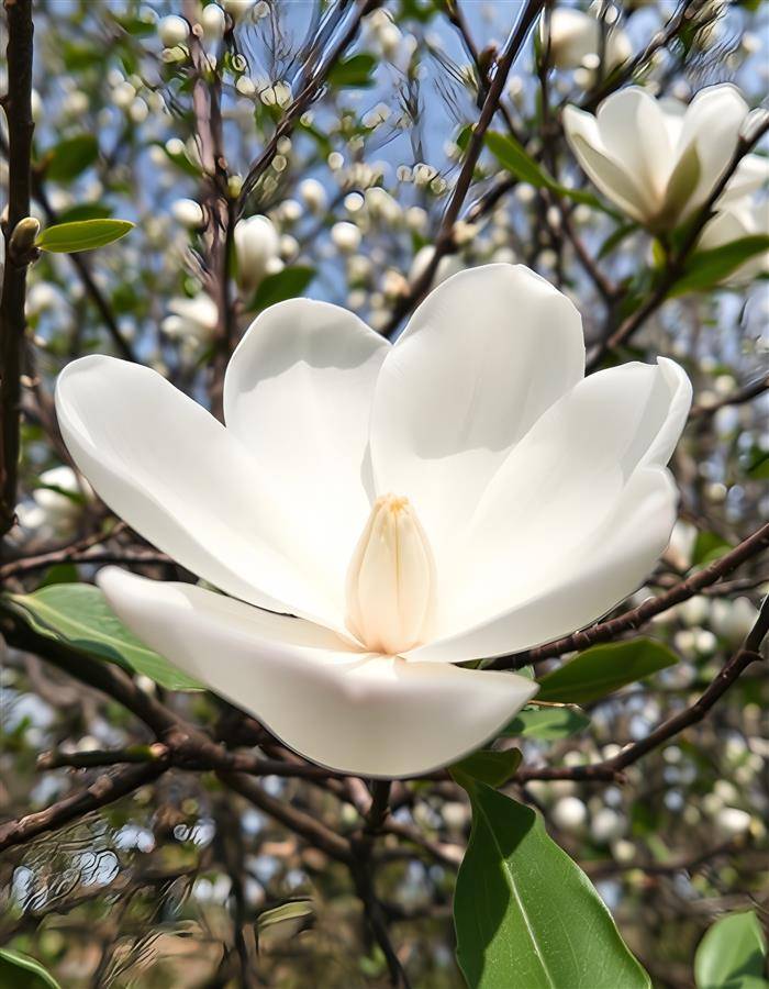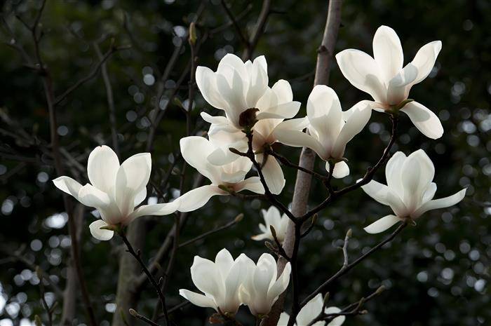 在晨曦中醒来的玉兰花,她的型总让人惊奇,极像水里的白莲花,长在水里是否因为厌倦了水的温柔,才来到岸上,体验陆地的硬朗,体验风雨霜雪的纠缠,东一朵,西一朵,像一群散栖在绿叶中的白鸟。