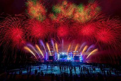 国庆观浏阳焰火新咏【诗:五律】 新韵(一麻)平首 2025/9/28原创 浏阳喷彩霞, 国庆绽天葩。 银瀑羞星雨, 金翎靓丽花。 千光书壮史, 万焰绘昌遐。 一瞬昭恒久, 同心报岁华。