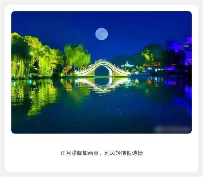 全诗用词精巧,“悬”字写河之蜿蜒,“照”字绘月之清透,寥寥数笔便勾勒出中秋夜的静谧与柔美。“抬头不见低头见”一句别出心裁,跳出常规望月诗的抒情框架,以通俗语言点出月光的普遍性;收尾“清辉遍地流”则以动态笔触收束,让月光仿佛有了流动的生命力,余韵悠长。