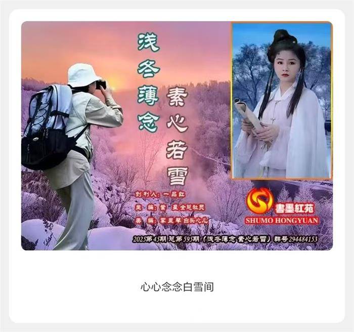 此诗以浅冬为卷,素心为笔,意境苍茫而情志高洁。起句“荒丘云岭远,朽木叶归家”勾勒出浅冬疏阔之景,落叶归根暗合归思,笔调沉郁有致;颔联“梦会胡杨树,情牵格桑花”借西域名花奇木,寄寓牵挂与坚守,意象鲜明且情意绵长。颈联“冰心留塞北,斗志落沉沙”直抒胸臆,以“冰心”扣“素心”之题,“斗志沉沙”藏尽历经风霜后的沉静,刚柔并济;尾联“不日寒梅艳,孤芳映晚霞”以浅冬盼梅收束,既显素心不随寒减的清劲,又以晚霞衬孤芳,余韵悠长。全诗景情交融,对仗工整,于浅冬萧瑟中见坚韧,于素心坚守中藏希冀,耐人寻味。