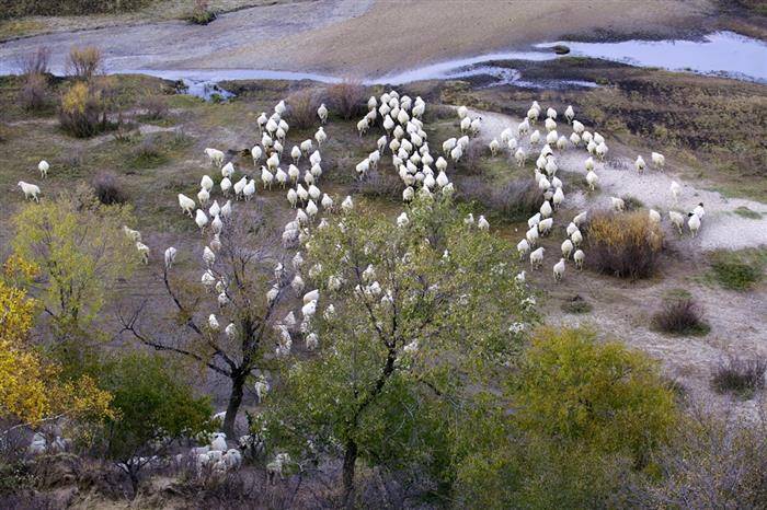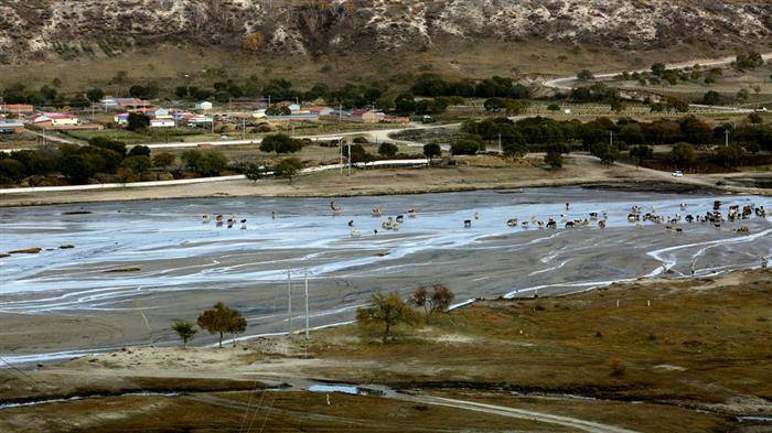 蜿蜒萨岭卧斜晖,北地斑斓入画