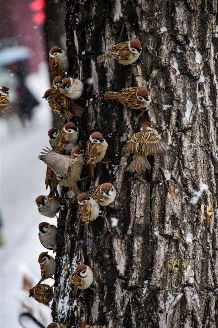 只为窗前寻粒米,挨挨挤挤恋萌呆。