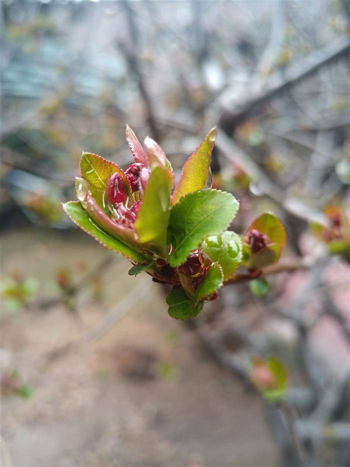 春雨斜斜舒地气,芽苞胀破色泽鲜。