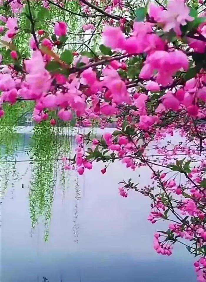 二月春分,满眸七彩田园。游者熙熙,欢声笑语其间。红桃粉杏,油菜花、遍野香妍。鹭飞鸳戏,衔泥紫燕溪边。