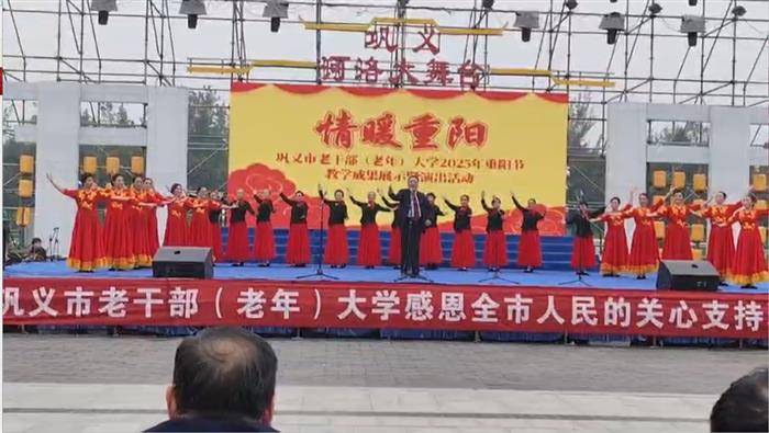 凉风染叶苑庭芳,银发登台笑脸扬。