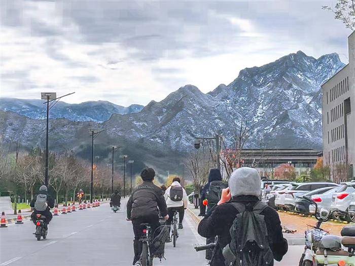 乙巳冬,此前不知冬天何时到来,没想到一个晚上气温骤降十度,秦岭的山上也下起了小雪,清晨前往开会,看见雄伟的秦岭附着一层银装,有感而作。