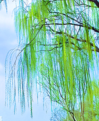 现代人早已没有了古时的浪漫,过去亲朋分离,十里长堤,长亭折柳相送。此风俗起源汉代,长安灞桥等地常见。文化内涵(“柳”谐音“留”,表达惜别;柳树一插即活的旺盛生命力,象征对友人适应新环境的良好祝愿),大约持续到清末。花数梅开早,树唯柳绿先。柳是春天的号手和意像中的重要角色,垂柳漫舞轻摇的柔姿,烟柳笼雾的风景给古今诗词作家提供了春天创作的绝好的题材。梅柳率先为季容,群芳争艳一时空。柳当极力咏之,正当时也!