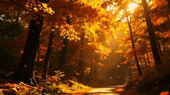黄叶与秋风在光影里旋转