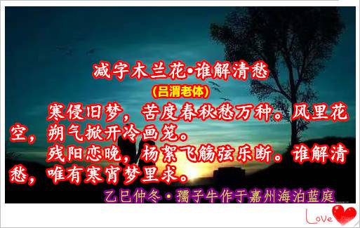 《减字木兰花·谁解清愁》 (吕渭老体)