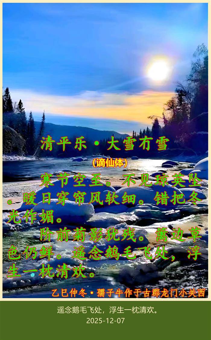 阶前菊影犹残。篱边草色仍鲜。遥念鹅毛飞处,浮生一枕清欢。
