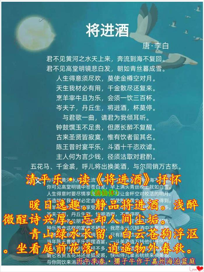 清平乐·读《将进酒》抒怀 (谪仙体)