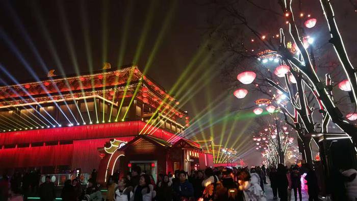 火树银花不夜城,万灯千彩尽欢声,唐妆佳丽舞姿轻,霓裳曲、歌尽大唐风。