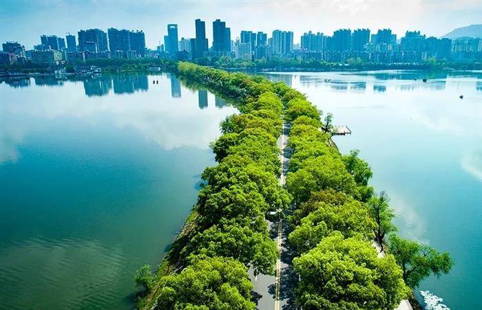 今回旧地览磁湖,岸柳垂青挂露珠。