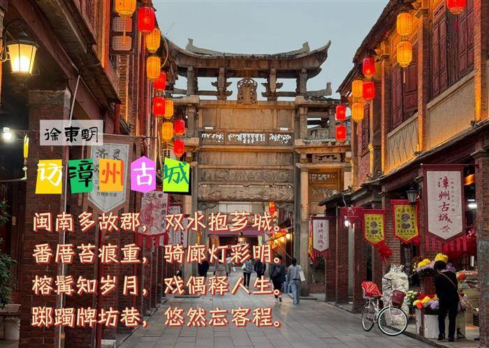《访漳州古城》一诗从宏观地理落笔,再聚焦街巷风物与人文意趣,层层递进,简洁而深情的笔触,勾勒出漳州古城的空间布局与文化气韵。
