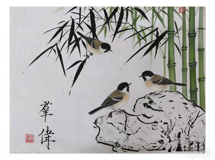 早春鸟竹图