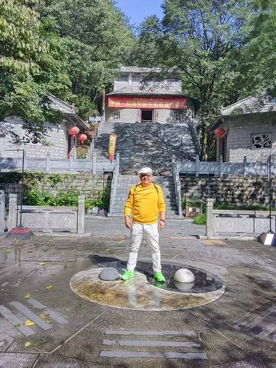 我和会长登盘古,徒步山间云雾边。祭祖不辞荆路远,寻根终有赤心牵。 天涯羁旅思亲切,海角情深夙梦圆。神话缤纷先辈慧,轩辕后裔万千年。注:盘古祖殿位于河南省桐柏县淮源风景名胜区内,是盘古文化的重要圣地。2025、9、20我和会长马毅徒步攀登桐柏山盘古祖殿。爬山真的是一场身体和心灵的双重旅行!山再高,往上攀,总能登顶;路再长,走下去,定能到达目的。徒步不只是为了看到山顶的风景,更是为了享受沿途的每一步。 爬山如人生,有起有落,有高有低,但每一步都要我们坚持。虽然很累心里很爽。时年八十一岁。