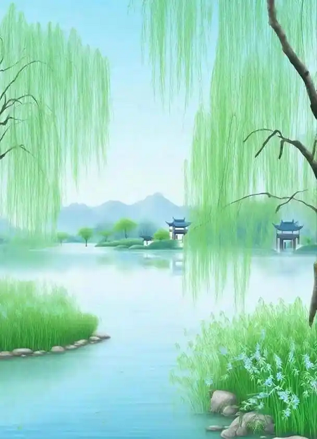 节过寒消暖气浓,鹅黄初醒嫩芽中。