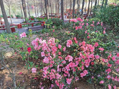 河渎神·琴亭湖观杜鹃花