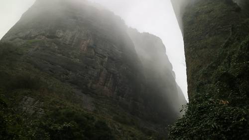 江郎雾海彩虹浮,一线窄,鼓声急,出谷穿云浮盖觅。