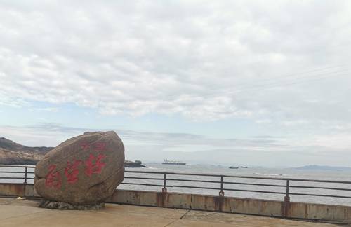 灯塔山顶烟囱,海波导引,巨轮潮追举。