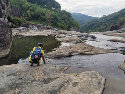 雪峰大湖岩坪远。问深浅。雷劈母岩断。