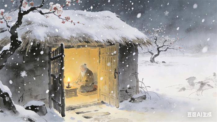柴门半掩玉妃舞,独坐寒庐烛火明。
