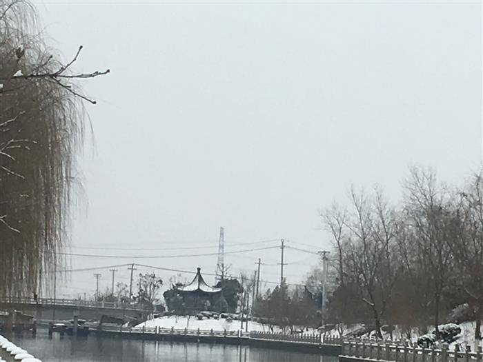 早晨拉开窗帘看到满地瑞雪,走到河岸站在瞭望台上眺望银装素裹的风景,吾陶醉了~~