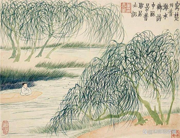 柳丝青绿苇蒲新,曲沼行舟逢早春。