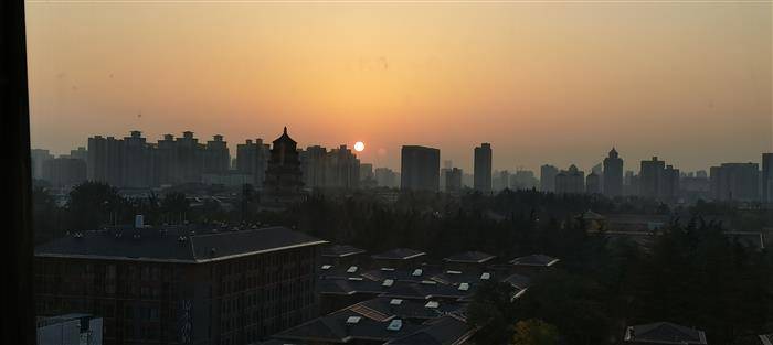 疫情封控在大雁塔旁宾馆内,读书之余,隔窗看夕阳,拍照聊以消遣。